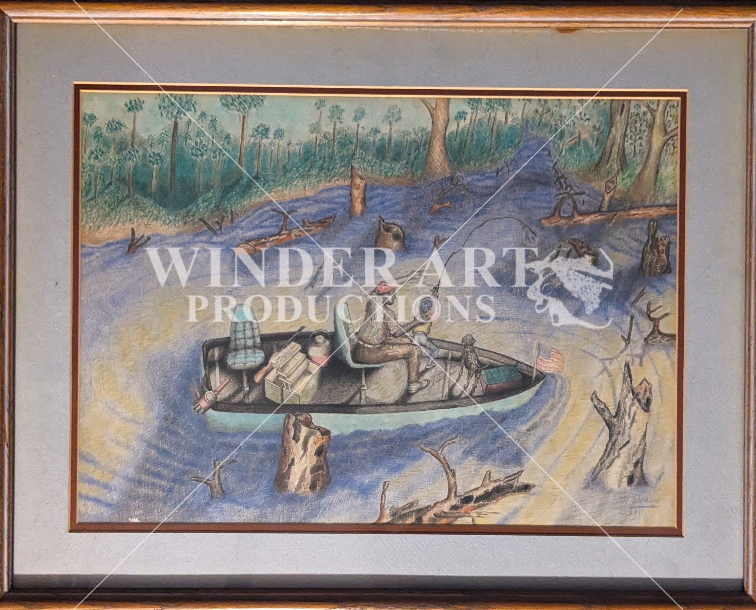 Color pencil cross hatch, Boy experience first time fishing with his dad.