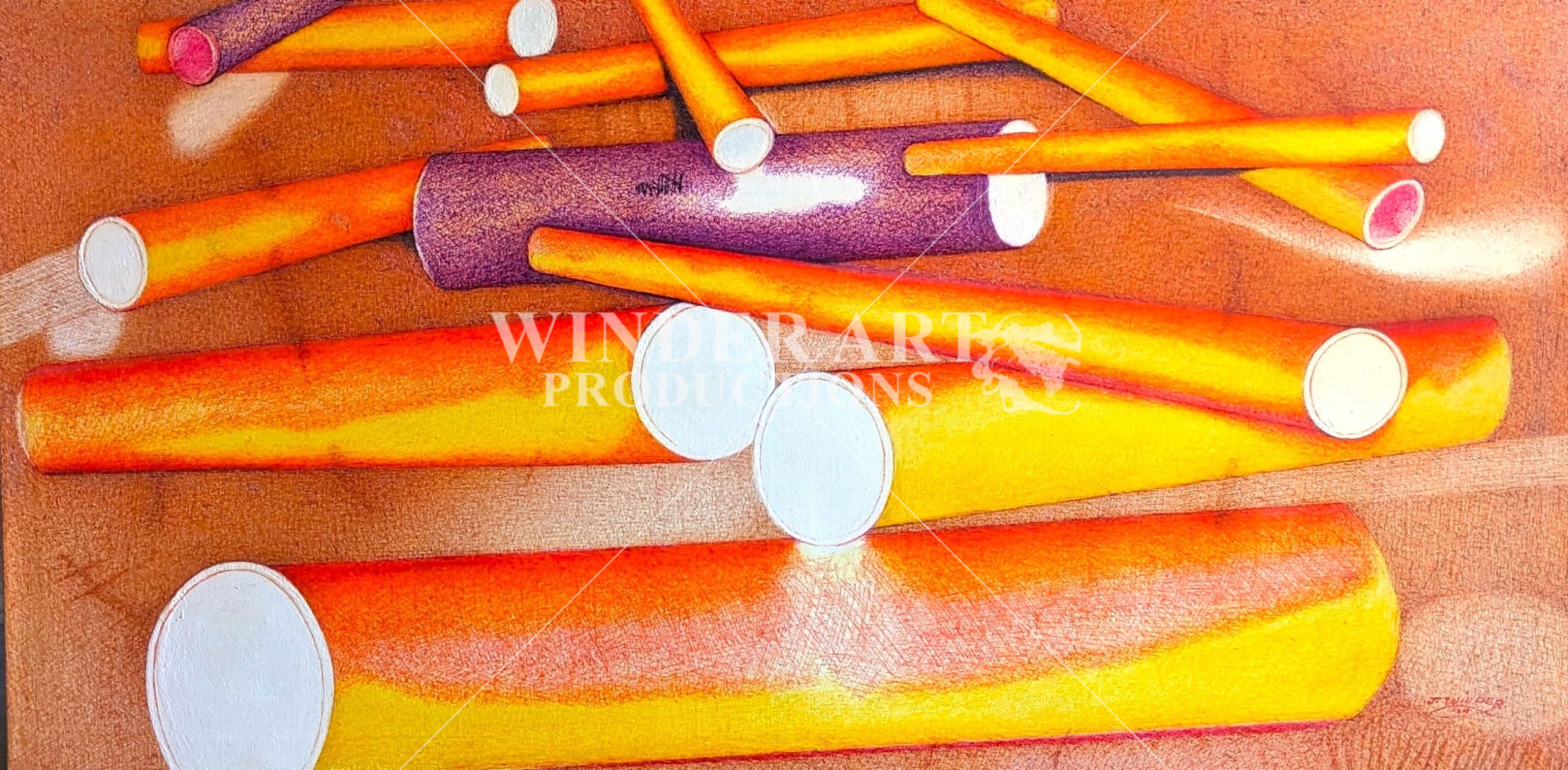 Pen and ink, drawing of mechanical cylinders reflecting pure natural light.