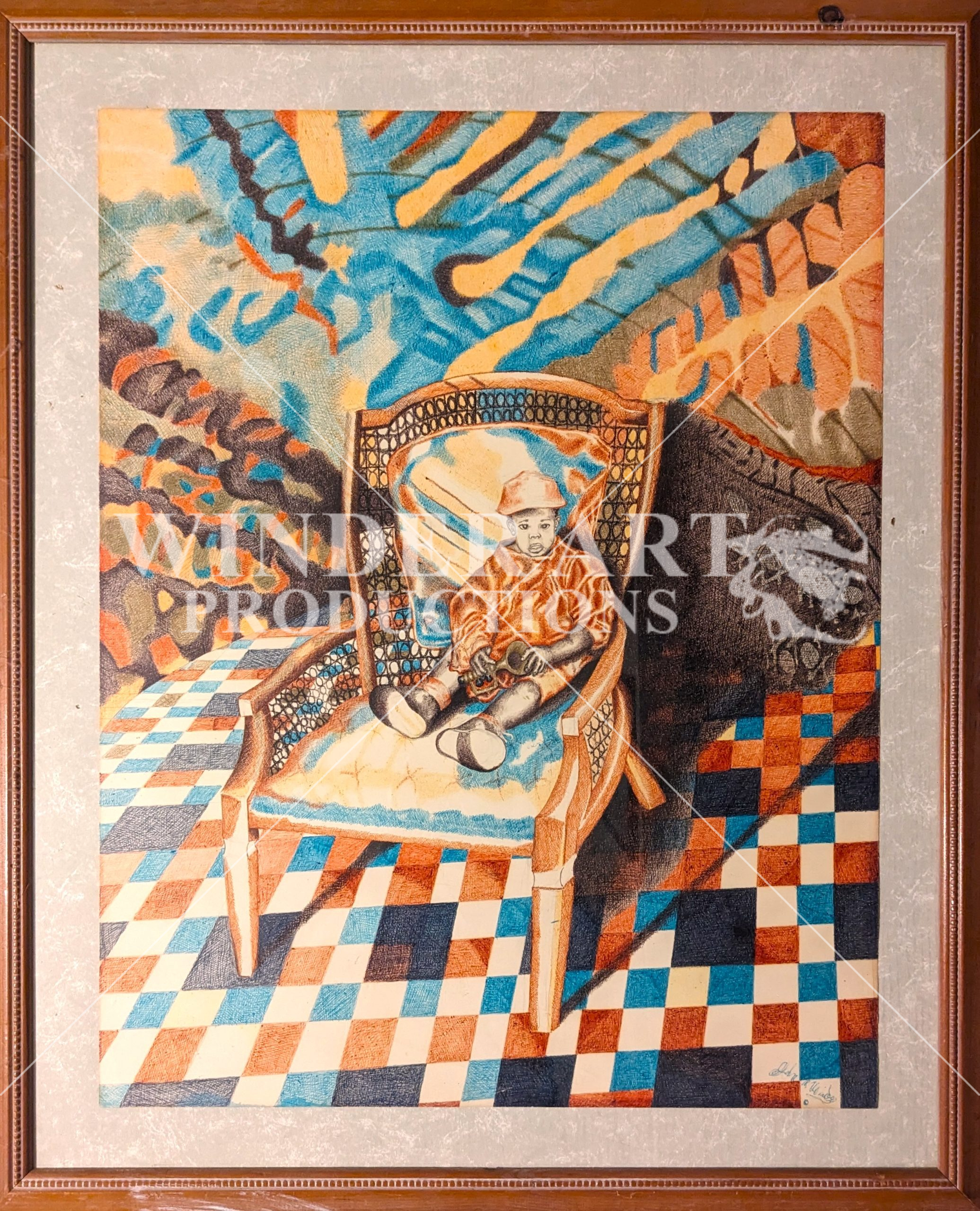 Ink pen cross hatch, of young boy with a horn.