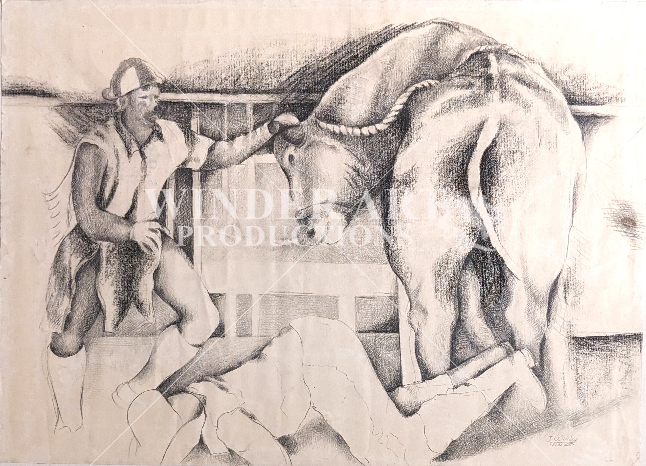 Pencil cross hatch, riding high until I make my time, Rodeo cowboy.