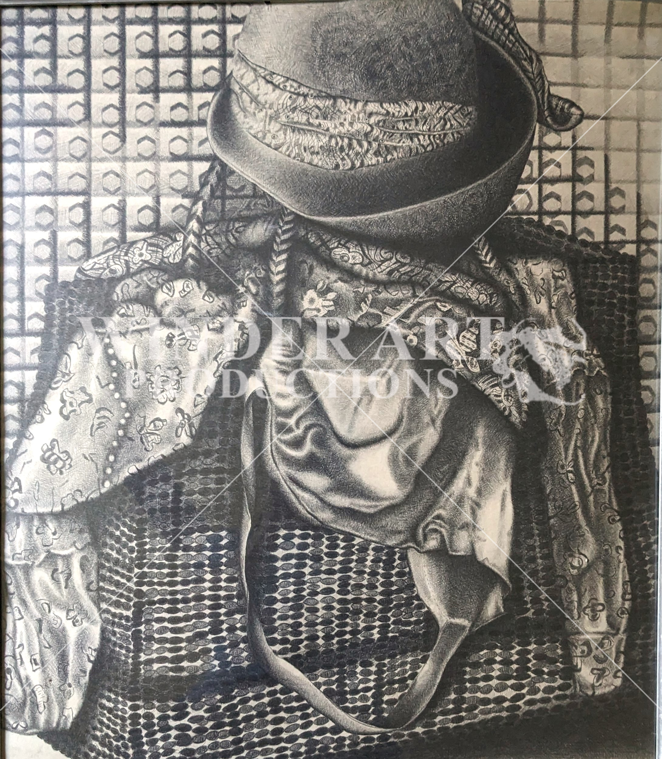 Pencil cross hatch, of cloth and bag.